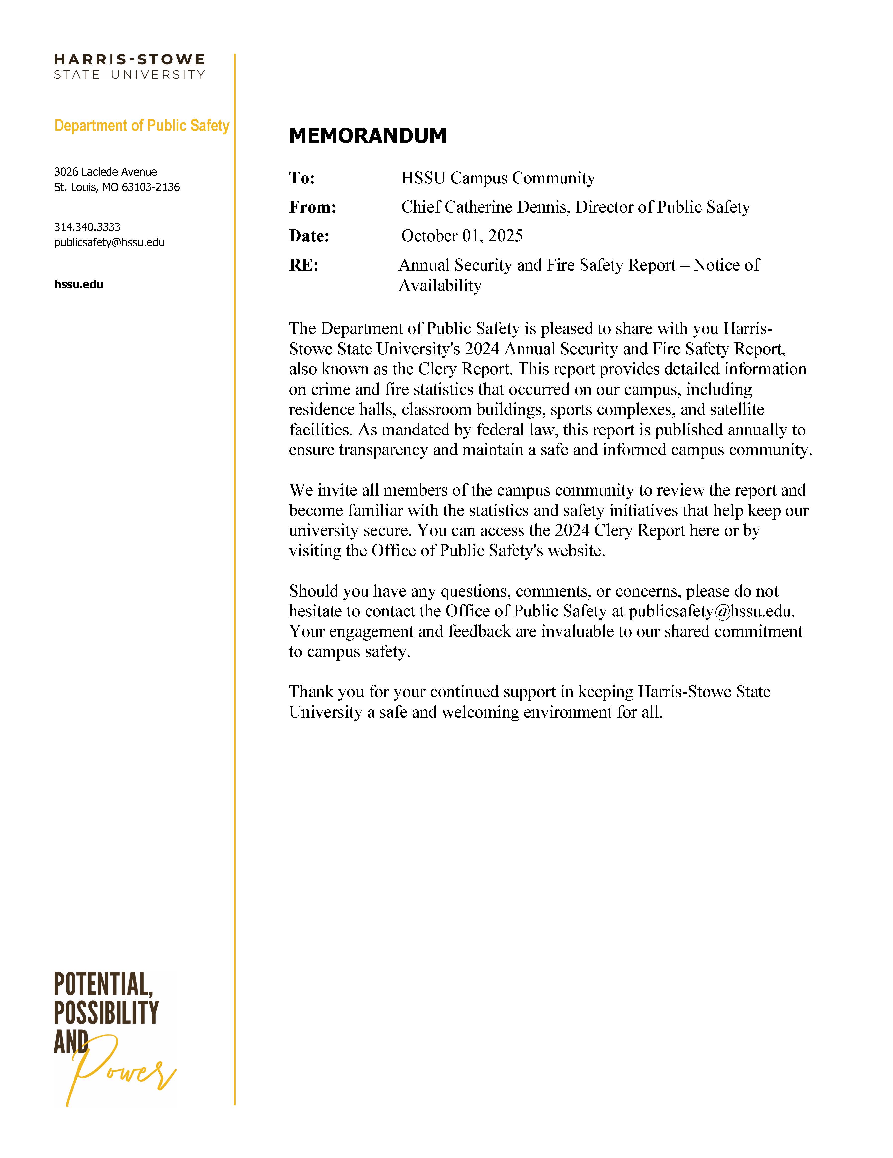 Click here to view the 2024 Annual Security and Fire Safety Report